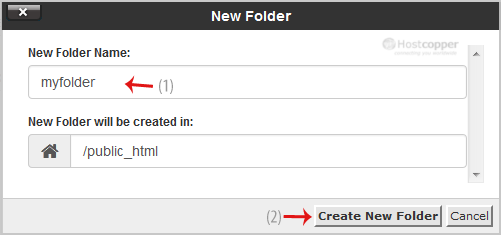 5. In the New Folder Name field, enter your folder name like my-folder (without the quotes). Then click on the Create New Folder button.
