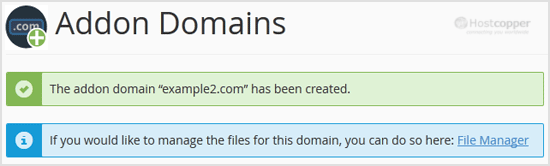 New Domain Name: Your Addon domain name like example2.com