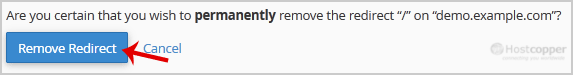 4. For confirmation, click on the Remove Redirect button once more.