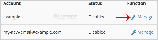 3. From the BoxTrapper Page, you can see a list of your emails under the Account tab and the status of BoxTrapper (enabled/disabled) under the Status tab. Click on the Manage link.