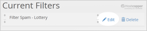 3. Under Current Filters, You can see all of your existing filters, Click on Edit next to the appropriate one.