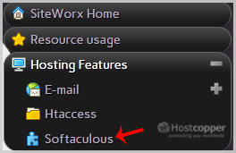 2. Under SiteWorx Menu, click the Hosting Features menu item if it is not already open.