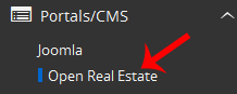 4. On the left side of your screen, you should locate the Portal/CMS category. Click on it and then click on the Open Real Estate link that will appear.