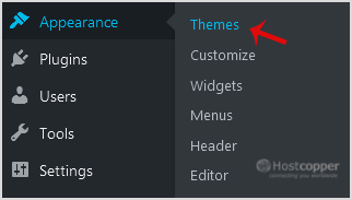 2. Under the dashboard menu, hover your mouse on Appearance and then click on Themes.