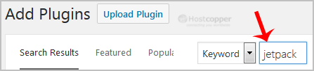 3. In the Search Plugin box, enter the name of the plugin you wish to install, such as Jetpack, and press enter.