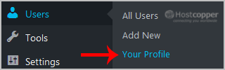 2. Under the dashboard menu, hover your mouse over Users and then click on Your Profile.