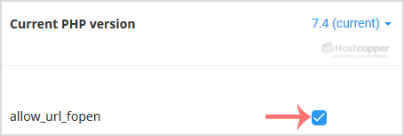 4. For enabling allow_url_fopen, tick mark it. For disabling it, uncheck it.